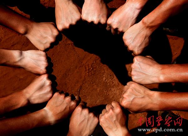 ????握緊拳頭,圍成同心圓,為了新營地加油!太陽底下,一雙雙手臂黑白分明,團結(jié)的拳頭盡顯力量之美。