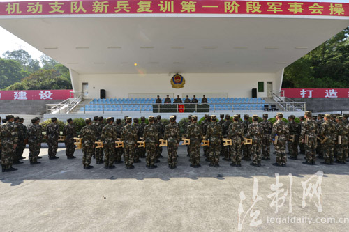 圖為機(jī)動支隊新兵復(fù)訓(xùn)第一階段軍事會操前隊伍集結(jié),做動員講話