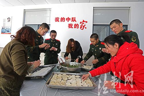 ????2017年1月22日,江蘇連云港邊檢站官兵與駐地百姓歡聚一堂,一起包餃子、做湯圓,閑話家常,其樂(lè)融融,把弄弄的軍民魚水情都包進(jìn)了餃子里。(鄭永波 錢逸帆)