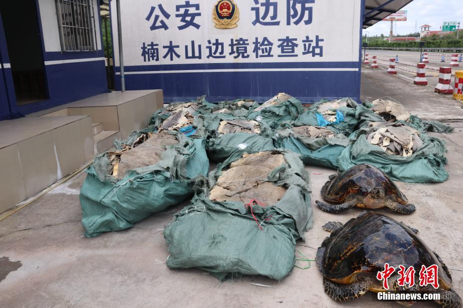 ????6月27日,廣西防城港邊防支隊楠木山邊境檢查站執(zhí)勤官兵在對一輛重型廂式貨車?yán)袡z查時,查獲涉嫌非法運輸玳瑁標(biāo)本2只、鯊魚皮11袋。這兩只玳瑁標(biāo)本重量共達(dá)到40多公斤,而11袋鯊魚皮重約1噸。據(jù)悉,玳瑁是國家二級重點保護(hù)野生動物,已被列入《世界自然保護(hù)聯(lián)盟》(IUCN)2012年瀕危物種紅色名錄。(張振國)