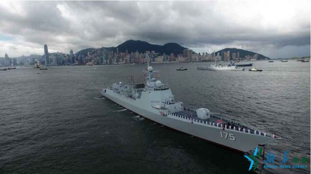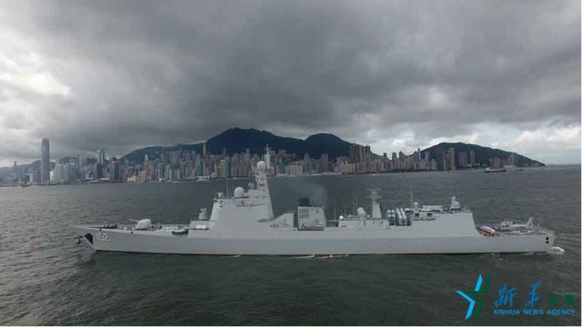 ↑7月7日,海軍濟南艦緩緩駛?cè)胂愀郯捍薮a頭。新華社記者 曾濤 攝