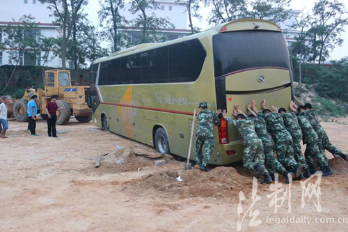 ????7月11日,河北邊防總隊(duì)秦皇島邊防支隊(duì)黃金海岸邊防派出所聞警立動(dòng),經(jīng)過(guò)四個(gè)小時(shí)的努力,及時(shí)救助一輛陷進(jìn)沙坑的旅游大巴,滯留車(chē)上的60余名旅客踏上了回家路。