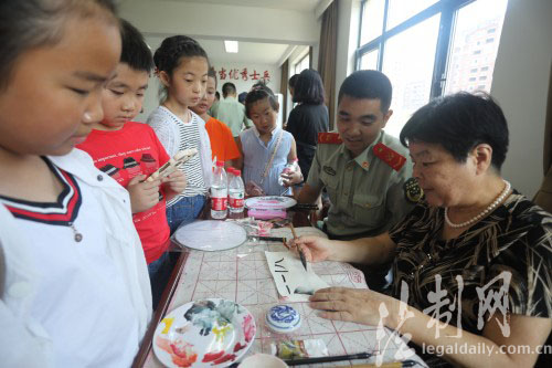 ????為慶祝建軍90周年,7月26日上午,在“八一”建軍節(jié)即將來臨之際,舟山市定海區(qū)昌國街道夕陽紅書畫攝影協(xié)會的七位老藝術(shù)家和翁山社區(qū)的十幾位小朋友一起走進(jìn)浙江邊防總隊舟山邊防支隊,開展“情系夕陽紅,警民魚水情”慰問活動,受到了官兵們的熱烈歡迎。