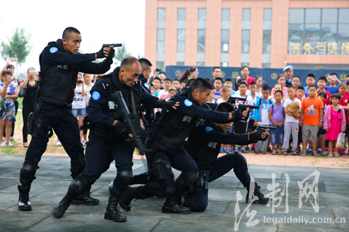 圖為特戰(zhàn)隊員為小學(xué)生們進(jìn)行“維和礪劍”科目表演