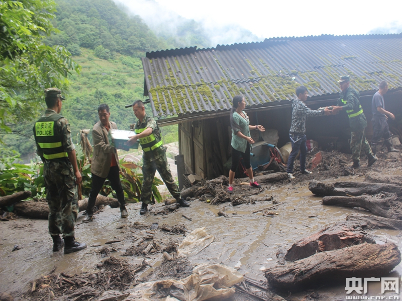 云南怒江突發(fā)泥石流 邊防官兵緊急救援