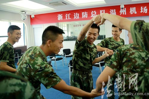 ????“快樂其實很簡單,用你的左手傳遞你的快樂,用你的右手接納別人的快樂……”浙江公安邊防總隊溫州機場邊檢站官兵正在心理教官的引導(dǎo)下開展心理減壓輔導(dǎo)活動。
