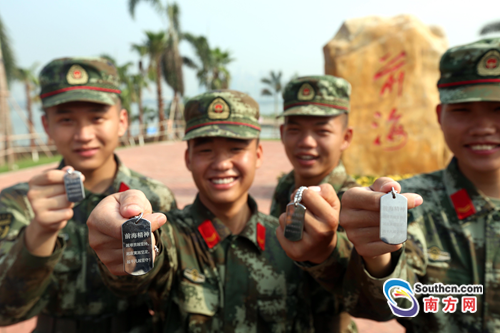 ????“楊志!”“到!”“你是一中隊第幾名戰(zhàn)士?”“我是一中隊第169名戰(zhàn)士,身為模范集體一員我深感驕傲!”“現(xiàn)在授予你榮譽牌,請入列!”9月5日,在中國人民抗日戰(zhàn)爭暨世界反法西斯戰(zhàn)爭勝利72周年之際,廣東邊防六支隊一中隊指導(dǎo)員趙文超與戰(zhàn)士們鏗鏘有力的對話在深圳前海這塊創(chuàng)新改革的土地上響亮。當(dāng)天,該中隊向每一名官兵授予了一枚銀光閃閃的專屬榮譽牌。榮譽牌正面刻有中隊番號、擁有者姓名和自己的編號,背面中隊精神“越艱苦越堅持,越寂寞越堅定,越平凡越堅守”幾個大字十分顯眼。在榮譽牌授予儀式上,全體官兵熱血沸騰,斗志昂揚,面對隊旗莊嚴(yán)舉起握拳的右手,用鏗鏘的誓言致敬意、表決心、釋忠誠。