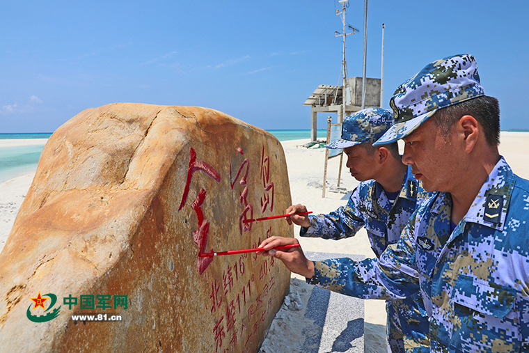在全富島,關(guān)建軍和三沙市副市長陳儒茂帶頭描摹主權(quán)碑上“中國”兩個大字。“每描一筆,都感到神圣無比,建設(shè)強大穩(wěn)固的現(xiàn)代邊海空防,共同守護好我們的祖宗海,離不開軍地協(xié)力??钙疬@一如山使命,我們責(zé)無旁貸!”關(guān)建軍的話語擲地有聲。特約記者 薛成清 通訊員 盆世舟 潘新新