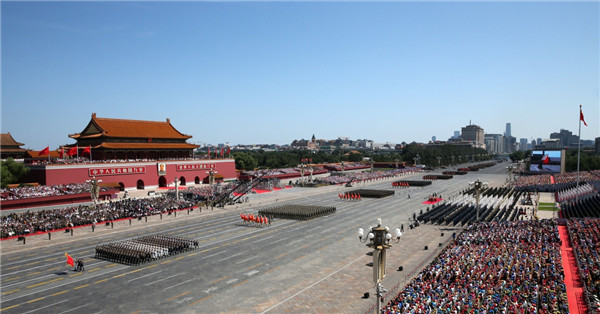 ????2015年9月3日,中國(guó)人民抗日戰(zhàn)爭(zhēng)暨世界反法西斯戰(zhàn)爭(zhēng)勝利70周年紀(jì)念大會(huì)在北京隆重舉行。這是徒步方隊(duì)通過(guò)天安門廣場(chǎng)。新華社記者 龐興雷 攝