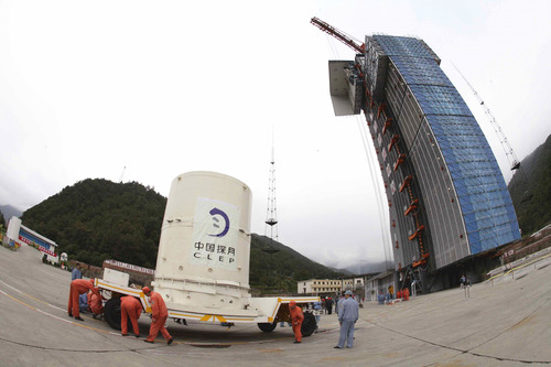 ????嫦娥一號(hào)衛(wèi)星運(yùn)抵西昌衛(wèi)星發(fā)射中心西昌發(fā)射場(2007年10月11日攝)。新華社發(fā)(郭文彬 攝)