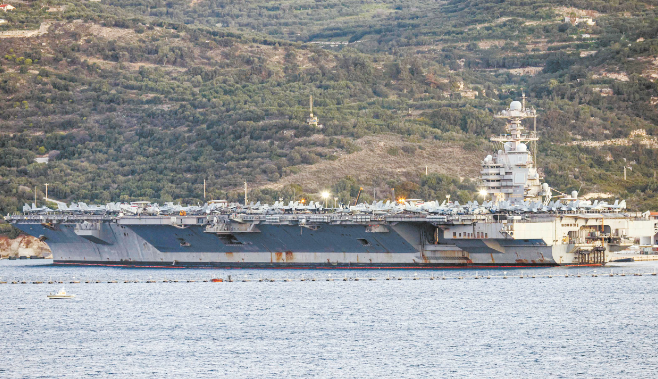 当地时间2月23日,美“福特”号航母停靠希腊克里特岛苏达湾。