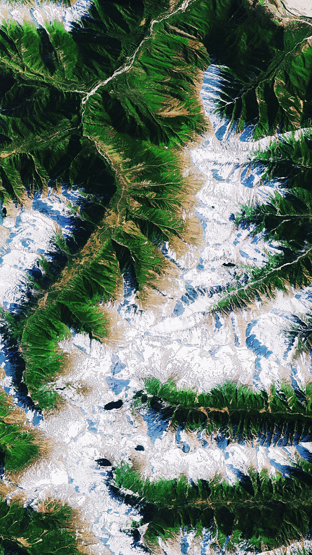 ▲圖為西藏自治區(qū)墨脫縣局部衛(wèi)星圖,這是一個(gè)森林與冰雪相生相伴的地方。衛(wèi)星數(shù)據(jù)來源:資源三號