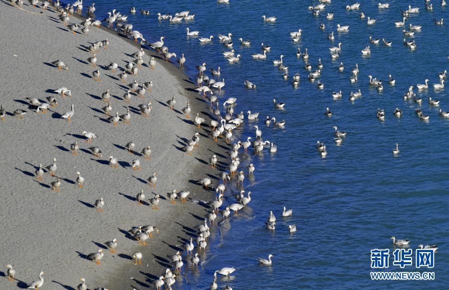 西藏雅尼國(guó)家濕地公園水鳥(niǎo)翔集(2月2日攝)。