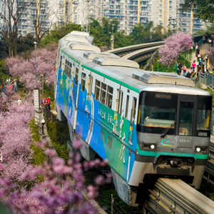 初春時(shí)節(jié),重慶氣溫逐漸回暖,暖陽里的山城春意盎然。在重慶軌道交通2號(hào)線佛圖關(guān)段,山城步道上的梅花簇簇綻放,單軌列車穿越花海,組成一幅賞心悅目的獨(dú)特城市景觀。