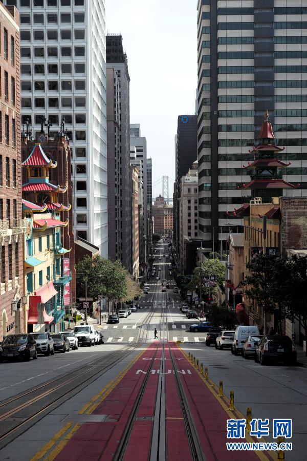 3月3日,美國加利福尼亞州舊金山街頭車輛稀少。新華社記者 吳曉凌 攝