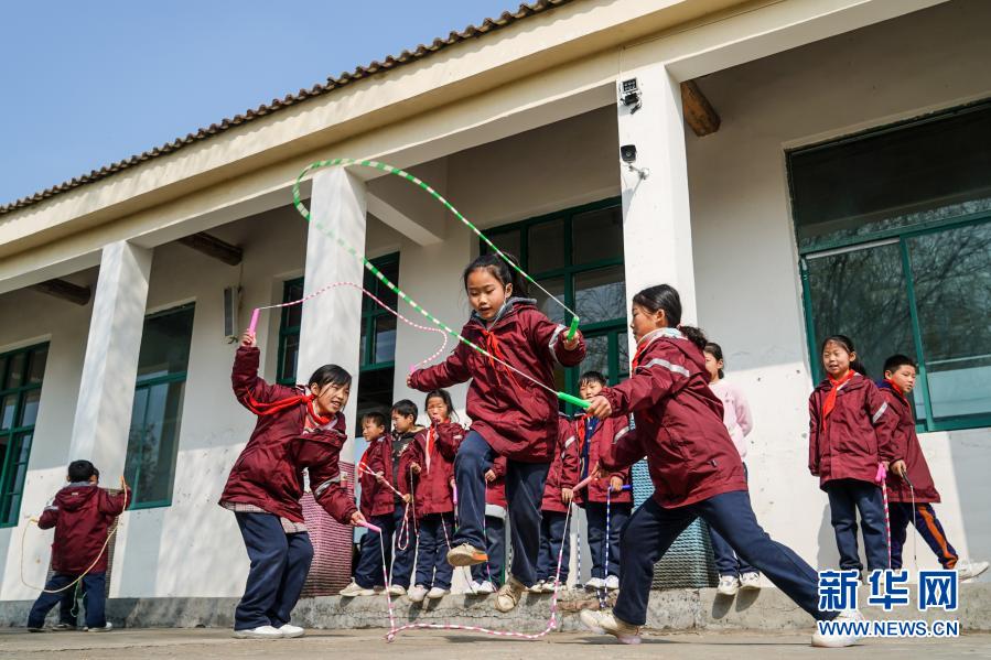 騎路小學(xué)的學(xué)生們在課間練習(xí)跳繩(3月10日攝)。新華社記者 李博 攝