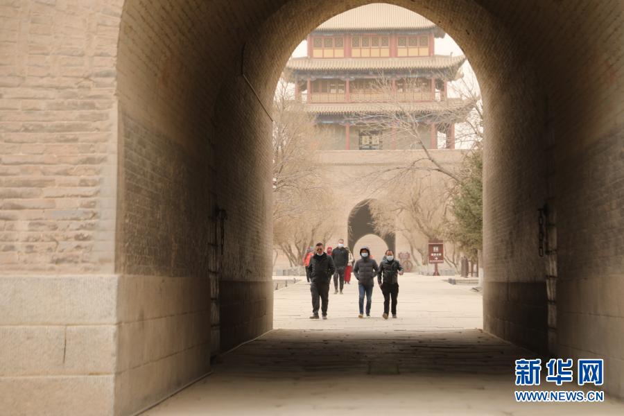 3月17日,游客在嘉峪關(guān)關(guān)城景區(qū)游覽。新華社記者 張智敏 攝