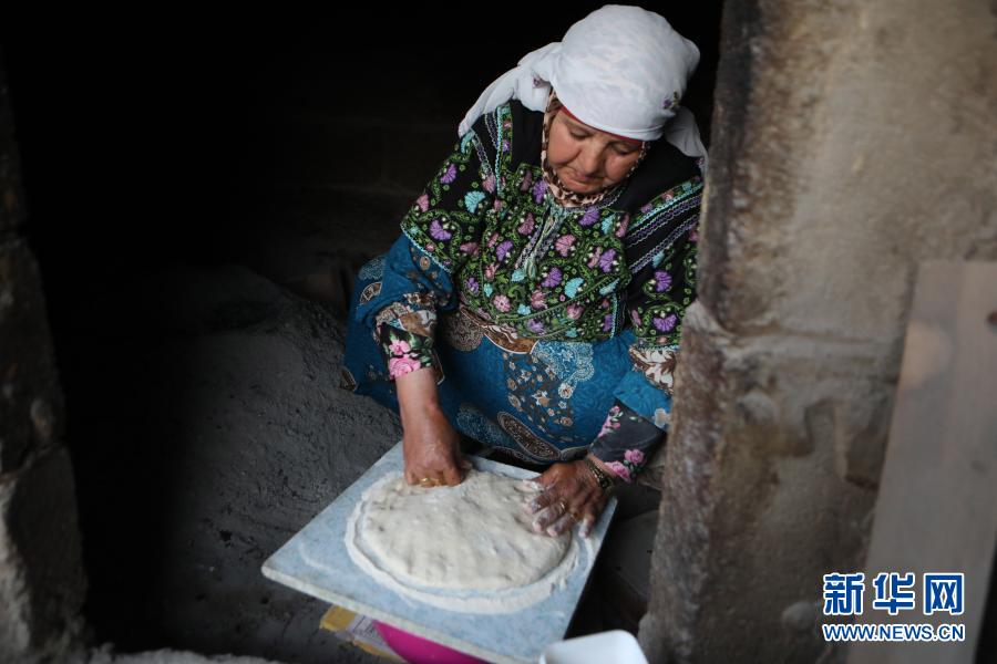 3月17日,70歲的卡茲蘭·阿布·卡巴什在約旦河西岸城市希伯倫附近的一個(gè)村莊制作“塔本”烤餅。