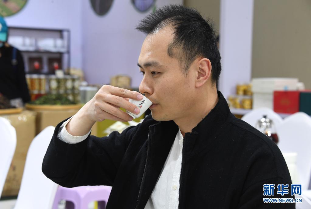 李卓澄在第十三屆中國(北京)國際茶業(yè)及茶藝博覽會上品茶(4月23日攝)。新華社記者 任超 攝