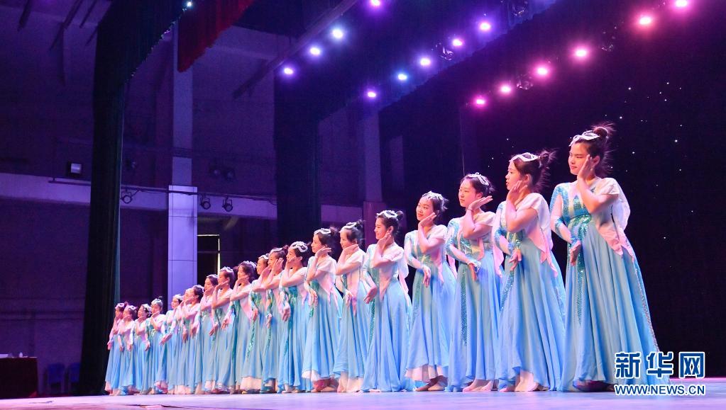 天津理工大學(xué)聾人工學(xué)院的舞蹈隊(duì)員們在學(xué)校的劇場里進(jìn)行彩排(5月10日攝)。