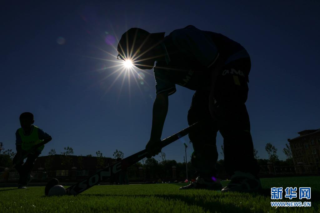 塔城市第二小學(xué)曲棍球隊的小隊員們在訓(xùn)練中(6月13日攝)。