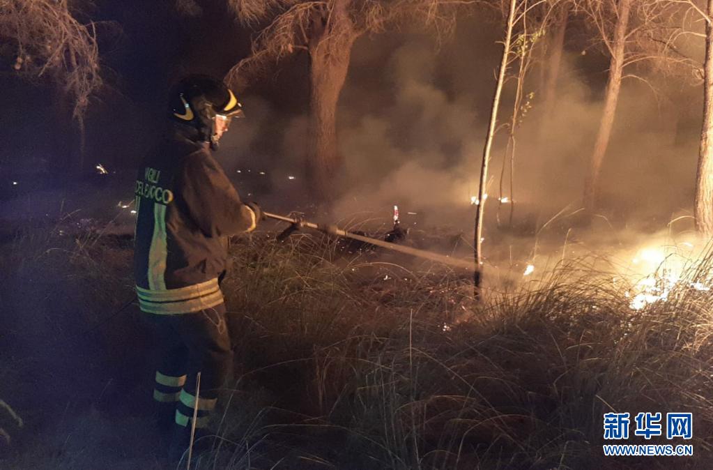 7月26日,消防員在意大利撒丁島參與滅火作業(yè)(手機照片)。