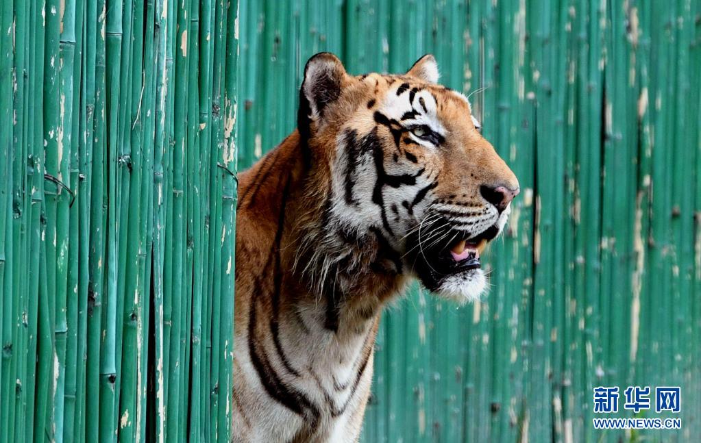 這是8月1日在印度新德里動(dòng)物園拍攝的孟加拉虎。