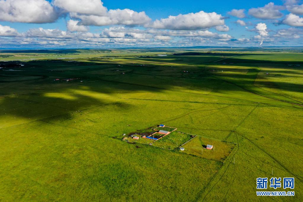 這是吉布斯樂瑪家的房屋和草場(7月27日攝,無人機(jī)照片)。