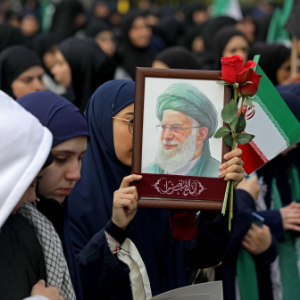 3月1日,在黎巴嫩首都贝鲁特南郊,民众集会声援伊朗。