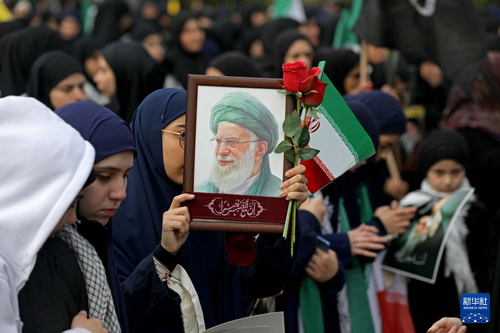 黎巴嫩贝鲁特南郊集会声援伊朗-新华网