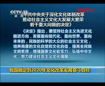 我國確定到2020年文化改革發(fā)展奮斗目標