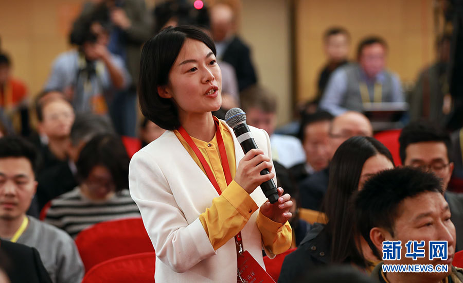 10月23日,十九大新聞中心舉辦記者招待會,邀請中央財經(jīng)領導小組辦公室副主任楊偉民,環(huán)境保護部黨組書記、部長李干杰介紹踐行綠色發(fā)展理念,建設美麗中國有關情況,并回答記者提問。圖為中新社記者提問。新華網(wǎng) 郝廣鵬攝