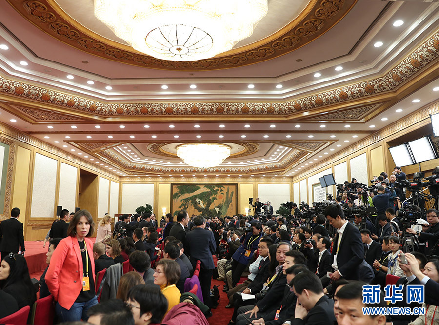 10月25日,黨的十九屆中央委員會第一次全體會議新選出的中央政治局常委將同中外記者見面。圖為中外記者在見面會現(xiàn)場進行準備工作。新華網(wǎng) 翟子赫 攝
