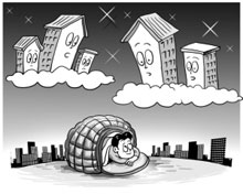 “蛋形蝸居”象征著艱辛的命運。他們懷著創(chuàng)業(yè)的夢想來到城市,沒有原始積累,不得不白手起家。他們白天在工作崗位上揮汗如雨,夜晚拖著疲憊的身軀穿過萬家燈火的城市,很想美美的睡上一覺,卻發(fā)現(xiàn)自己一直是城市的過客,而不是歸人。但蛋形蝸居又象征著不屈的精神。沒有一只高翔的小鳥不是從蛋中孵化而出。這個群體夢想用雙手改變著命運,希冀“提著今日種種千辛萬苦,為明天換一些美滿和幸?!?。他們的字典里永遠寫著奮斗,奮斗,奮斗。 …[詳細] |