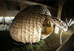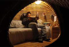 | 這座“蛋形小屋”的出現(xiàn),一度讓許多人嘖嘖稱奇。在房價居高不下的今天,年輕的蝸居一族依然抱著樂觀心態(tài)、非凡的想象力和創(chuàng)造力,以及難能可貴的實踐精神,活出了自己的精彩,體現(xiàn)了頑強的生存能力。尤其是這位設計者,在滿足自己基本居住的前提下,還不忘發(fā)揚一把低碳環(huán)保理念。據(jù)他介紹,這座小屋的外墻是由撒上草籽的沙袋組成,澆了水能長出草來;墻上附有太陽能光板,可以吸收熱能轉化成電;屋子底部還裝有輪子,方便“蛋形小屋”隨時轉移。室內陳設簡單、齊全,而且還配備了消防設施。可以說,是一件基本符合建筑設計標準的作品。只是這間小屋沒有“準生證”,也就是說,戴海飛是“無證蝸居”。 …[詳細] |