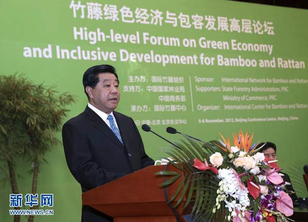 ??? 11月6日,全國政協(xié)主席賈慶林在北京出席國際竹藤組織成立15周年紀(jì)念大會并致辭。 新華社記者龐興雷攝