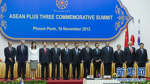 ????新華網(wǎng)金邊11月19日電(記者劉華 馮堅 王其冰)東盟與中日韓(10+3)合作15周年紀念峰會19日在柬埔寨金邊舉行。中國國務院總理溫家寶與東盟十國、日本、韓國領(lǐng)導人共同出席。柬埔寨首相洪森主持會議。