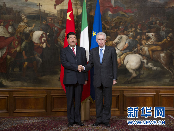 賈慶林會(huì)見(jiàn)意大利總理蒙蒂