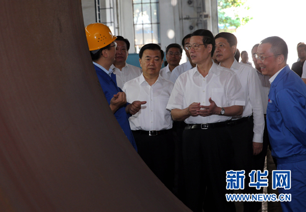 ??? 這是7月4日,張高麗來到甘肅蘭州蘭石集團有限公司車間考察企業(yè)的生產(chǎn)經(jīng)營情況。 新華社記者劉衛(wèi)兵攝