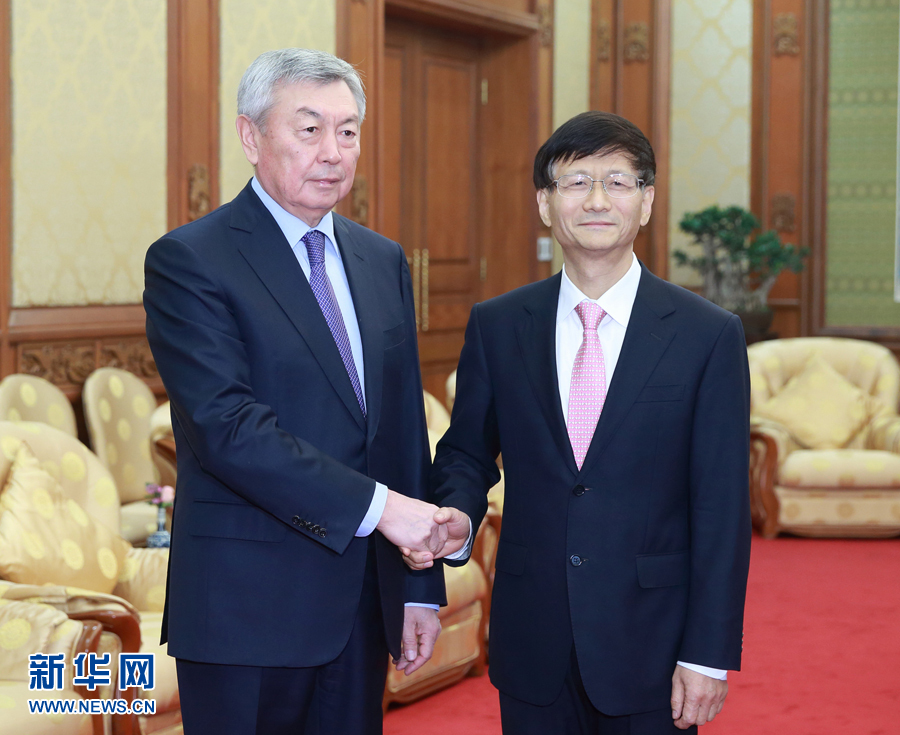 ??? 11月4日,中共中央政治局委員、中央政法委書記孟建柱在北京釣魚臺國賓館會見哈薩克斯坦國家安全委員會主席阿貝卡耶夫。 新華社記者丁海濤攝