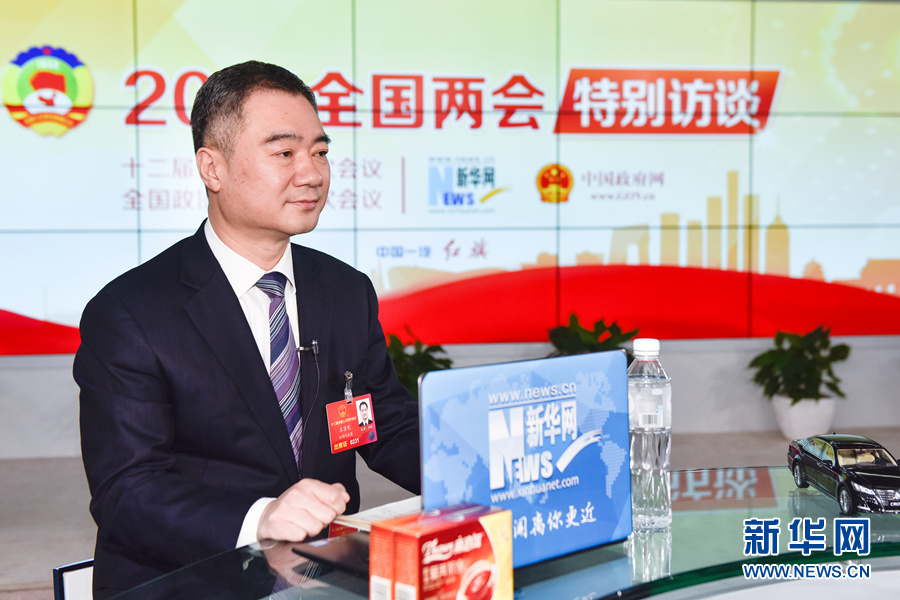 3月12日,全國人大代表,運(yùn)城市市長(zhǎng)王清憲做客新華網(wǎng)2016全國兩會(huì)特別訪談,與新華網(wǎng)網(wǎng)友在線交流。圖為王清憲在訪談現(xiàn)場(chǎng)。新華網(wǎng) 付宇鵬 攝