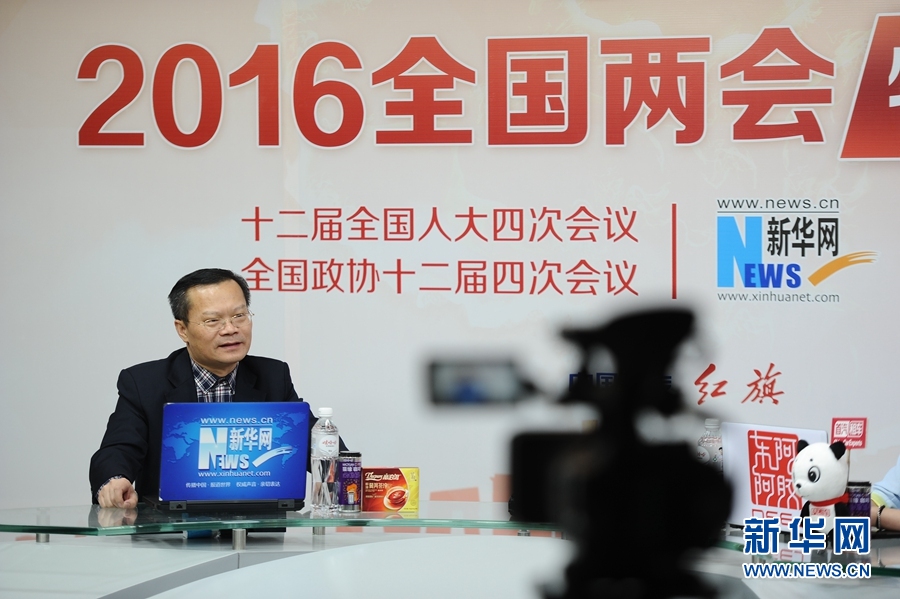 2016年3月14日,全國(guó)人大代表、湖南省益陽(yáng)市委書記胡忠雄做客新華網(wǎng)兩會(huì)訪談直播間。圖為訪談現(xiàn)場(chǎng)。新華網(wǎng) 盧志佳 攝