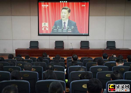 中國(guó)共產(chǎn)黨第十九次全國(guó)代表大會(huì)18日上午在人民大會(huì)堂開(kāi)幕。習(xí)近平總書(shū)記代表第十八屆中央委員會(huì)向大會(huì)作了題為《決勝全面建成小康社會(huì) 奪取新時(shí)代中國(guó)特色社會(huì)主義偉大勝利》的報(bào)告。國(guó)家檢察官學(xué)院黨員干部集體收看收聽(tīng)了開(kāi)幕式。徐鵬宇攝
