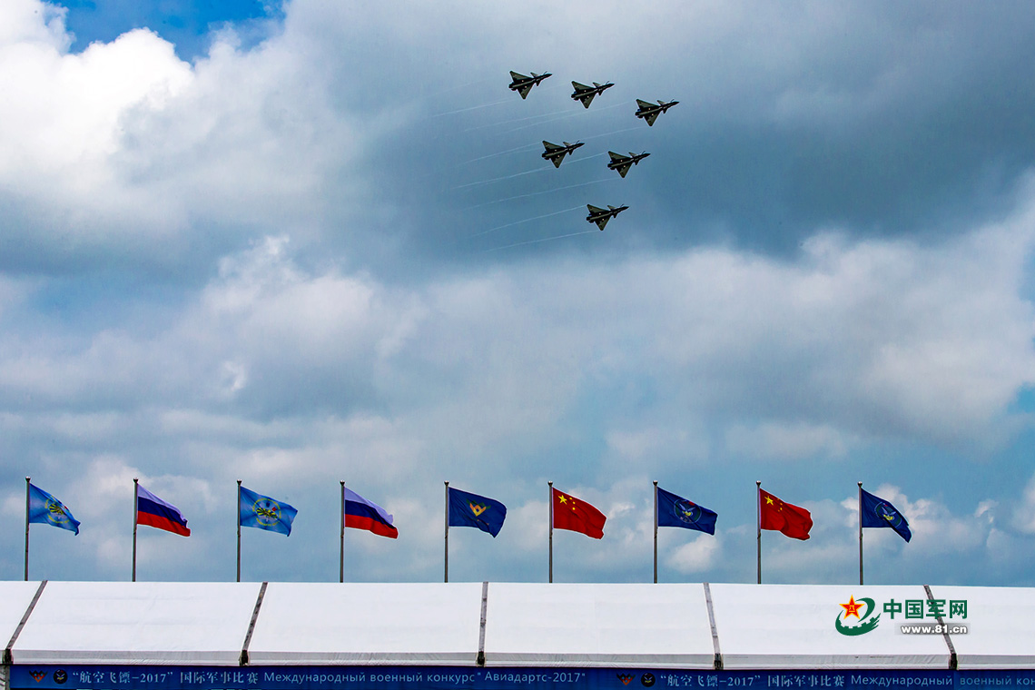 2017年8月4日,“國際軍事比賽-2017”航空飛鏢項目,中國空軍“八一”飛行表演隊亮相“航空飛鏢”靶場開放日。楊盼 攝影