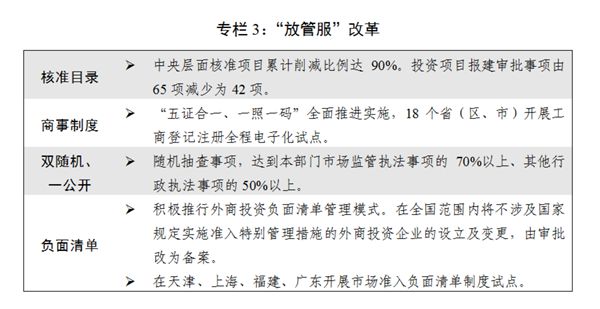 一是簡政放權(quán)放管結(jié)合優(yōu)化服務(wù)改革向縱深推進。在提前完成本屆政府減少行政審批事項三分之一目標(biāo)的基礎(chǔ)上,去年又取消165項國務(wù)院部門及其指定地方實施的審批事項,清理規(guī)范192項審批中介服務(wù)事項、220項職業(yè)資格許可認定事項。第三次修訂政府核準的投資項目目錄。商事制度改革繼續(xù)深化。全面推行“雙隨機、一公開”,增強事中事后監(jiān)管的有效性,推進“互聯(lián)網(wǎng)+政務(wù)服務(wù)”。市場準入負面清單制度改革試點開局良好?!胺殴芊彼拇笃脚_建成運行。