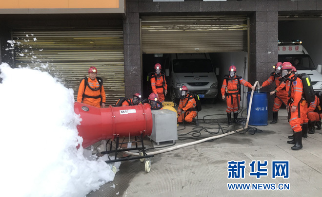 邵陽(yáng)市礦山救護(hù)支隊(duì)隊(duì)員在日常技能訓(xùn)練。新華網(wǎng) 于子茹 攝