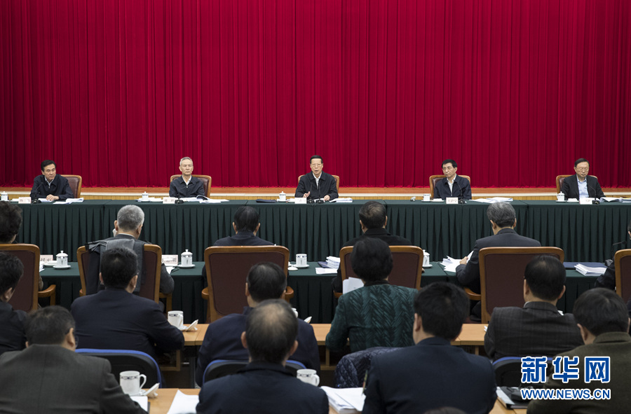 1月16日,推進“一帶一路”建設工作會議在北京召開。國務院副總理張高麗主持會議并講話。中共中央政治局常委、中央書記處書記王滬寧出席會議。新華社記者 王曄 攝