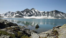 新疆阿勒泰高山“藏”湖 白雪相映美不勝收
