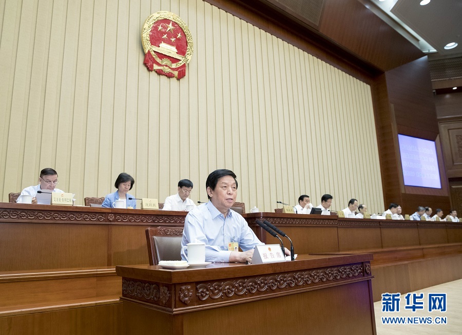 7月9日,十三屆全國人大常委會第四次會議在北京人民大會堂舉行。栗戰(zhàn)書委員長主持會議并作全國人大常委會執(zhí)法檢查組關(guān)于檢查大氣污染防治法實(shí)施情況的報(bào)告。 新華社記者王曄攝