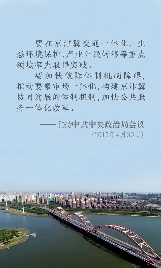 2013年5月,習(xí)近平總書記在天津調(diào)研時(shí)提出,要譜寫新時(shí)期社會(huì)主義現(xiàn)代化的京津“雙城記”。2013年8月,習(xí)近平總書記在北戴河主持研究河北發(fā)展問題時(shí),又提出要推動(dòng)京津冀協(xié)同發(fā)展??倳浂啻螐?qiáng)調(diào),解決好北京發(fā)展問題,必須納入京津冀和環(huán)渤海經(jīng)濟(jì)區(qū)的戰(zhàn)略空間加以考量,以打通發(fā)展的大動(dòng)脈,更有力地彰顯北京優(yōu)勢,更廣泛地激活北京要素資源,同時(shí)天津、河北要實(shí)現(xiàn)更好發(fā)展也需要連同北京發(fā)展一起來考慮。